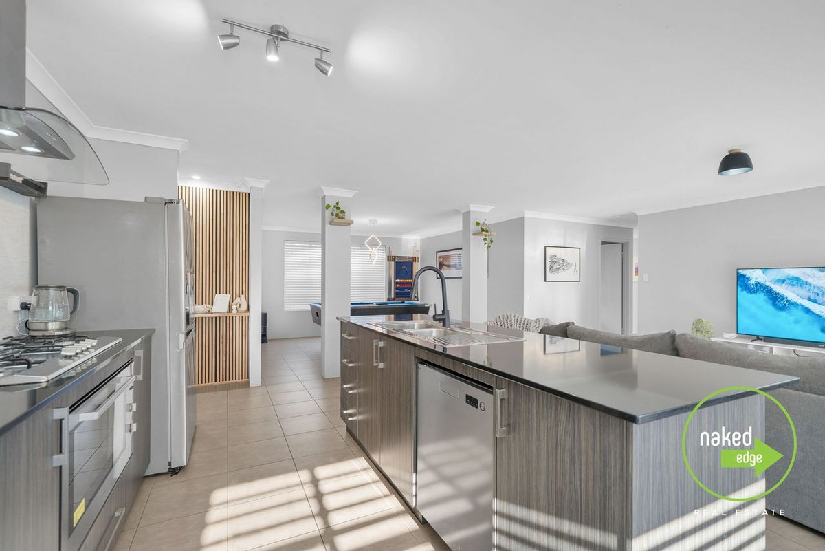 Open-plan living & dining with LED lighting & quality tiled floors the hub of the home